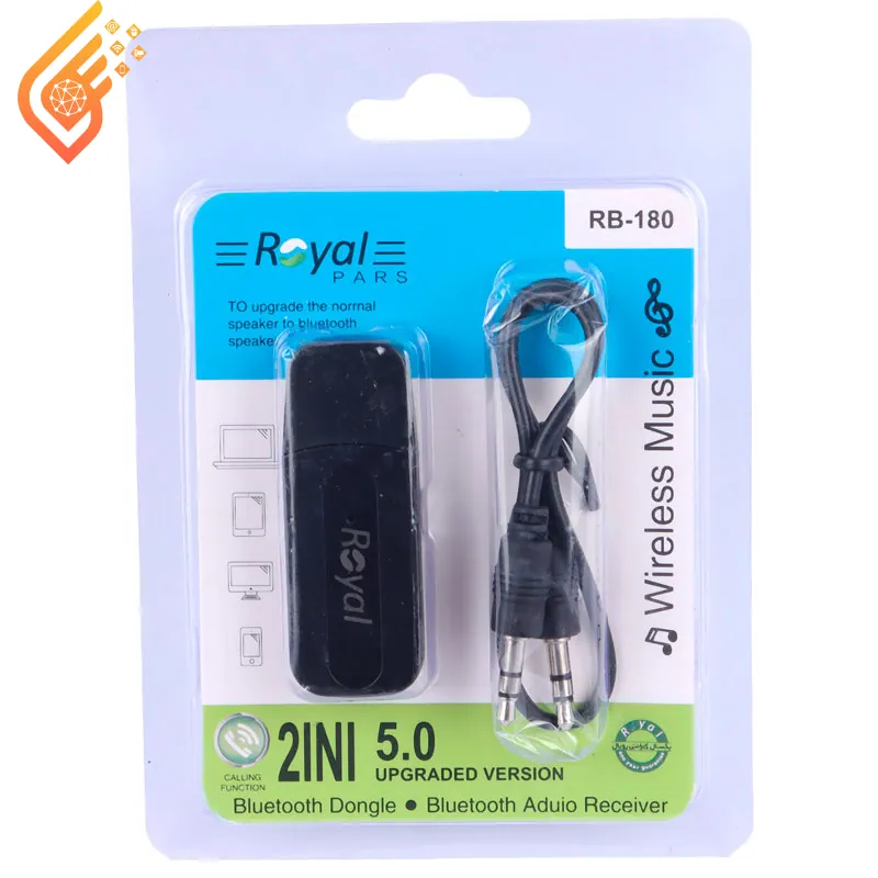 دانگل بلوتوث Royal RB-180 یک گیرنده صوتی بیسیم کاربردی است که با اتصال سریع از طریق بلوتوث نسخه 5.0 امکان پخش موسیقی و برقراری تماس را بدون استفاده از کابل فراهم میکند. این محصول دارای برد اتصال حدود ۱۰ متر بوده و از پروفایلهای مختلف بلوتوث از جمله A2DP، AVRCP، AVDTP، HFP و HSP پشتیبانی میکند تا کیفیت و پایداری انتقال صدا تضمین شود.