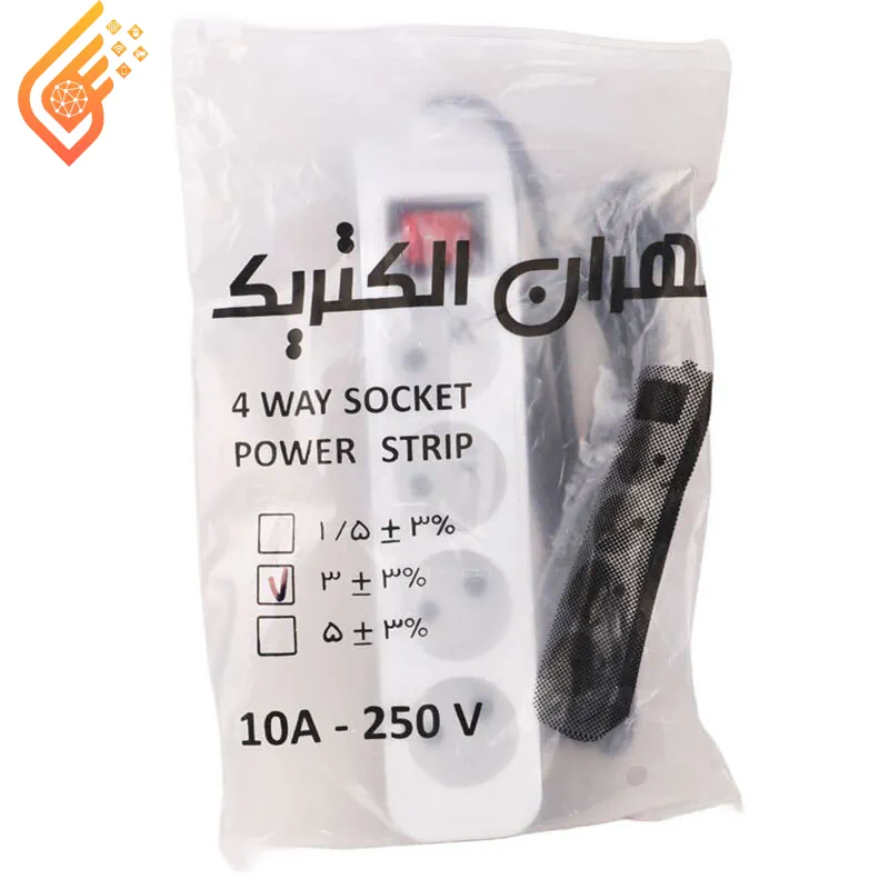 این چندراهی برق کاربردی از برند تهران الکتریک، دارای ۴ پریز بدون ارت و یک کلید روشن/خاموش برای کنترل جریان برق است. بدنه از پلاستیک مقاوم ساخته شده و کابل آن با طول ۳ متر و روکش پلاستیکی، گزینهای مناسب برای مصارف خانگی و اداری محسوب میشود.
