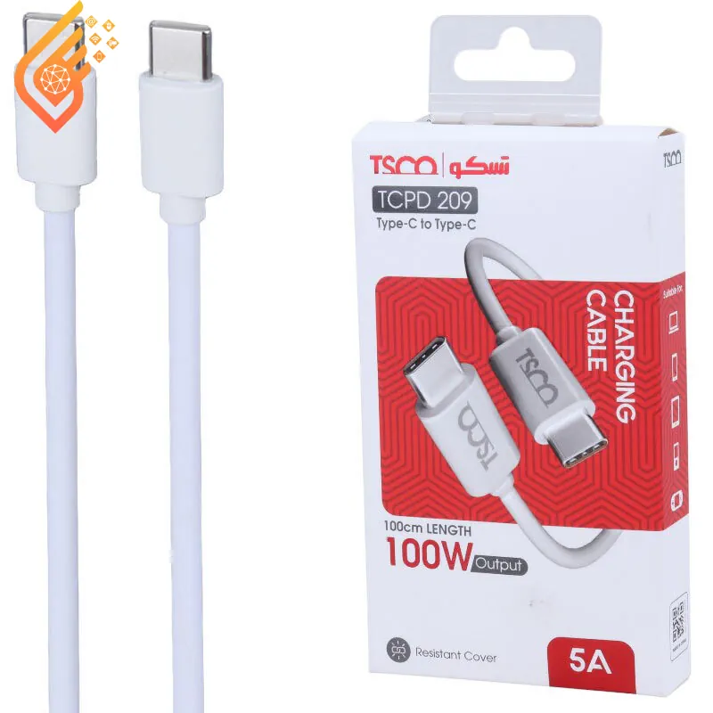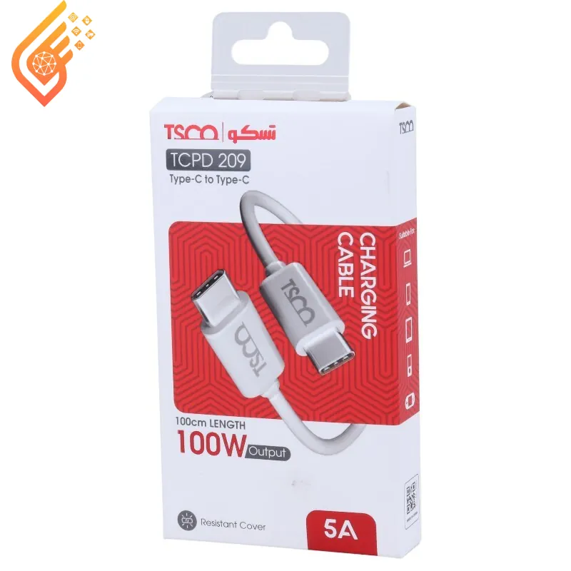 کابل دو سر تایپ سی تسکو مدل TCPD 209 با طول ۱ متر، کابل تبدیل Type-C به Type-C با توان خروجی بالا ۱۰۰ وات است. این کابل مجهز به روکش مقاوم از جنس PVC بوده و در برابر کشش و پارگی دوام بالایی دارد.